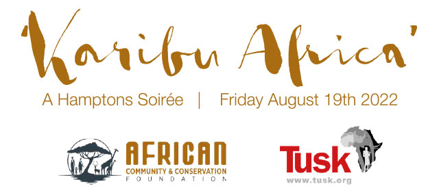 We are excited to invite donors and companies to support the joint community upliftment, education, and wildlife conservation work of the African Community Conservation Foundation (ACCF) and Tusk by joining us at our Karibu Africa Hamptons Soirée – a summer party generously hosted by Gary and Amy Green.